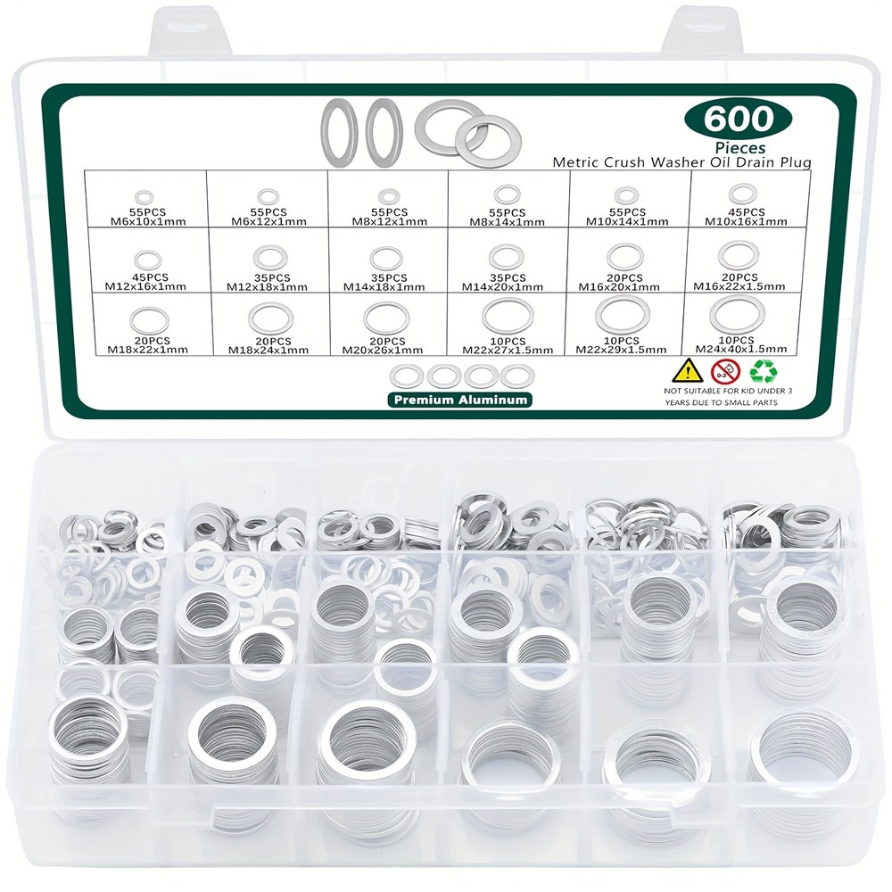 600개 드레인 플러그 가스켓 키트, 18가지 알루미늄 와셔 조합 M20 M16 M24